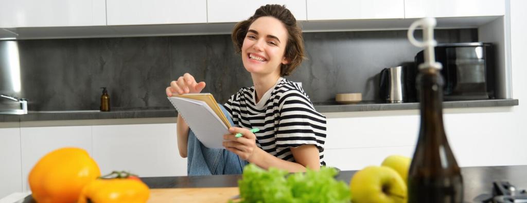 Notiere täglich Mahlzeiten, Schlafdauer, Bewegung, Stresslevel und Laune von 1 bis 10. Nach sieben Tagen erkennst du Muster. Lade deine anonymisierte Vorlage hoch und berichte, welche Mahlzeiten dich wirklich stabilisieren.